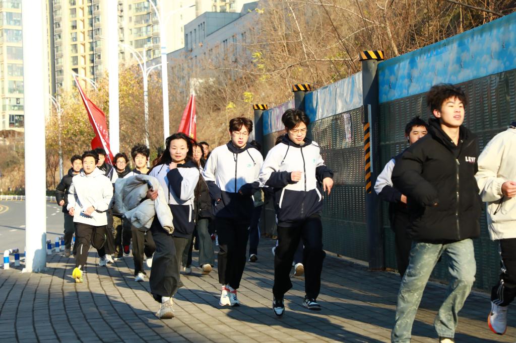 师生从明德广场出发,每个人的脸上都洋溢着活力与自信的笑容,他们精神饱满,步伐稳健。跑步路线延伸至校外,沿途设有精心设计的打卡点,参与者们依次经过这些站点,在享受运动乐趣的同时,也能领略城市的不同风貌。